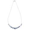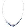 claw set with alternating graduated round, cushion and pear shaped sapphire pendants, to a fancy link chain stamped 750