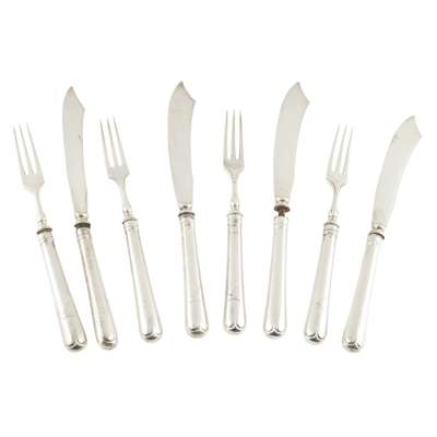 Francis Higgins, London 1880, comprising eighteen forks and eighteen knives, all of simple design, crest to terminal