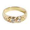 collet set with two round brilliant cut diamonds, each shoulder with Celtic knot pattern,set with two small round brilliant cut diamonds, to a plain shank stamped 18ct