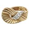 of scrolling fan design, set with a single row of five eight-cut and round brilliant-cut diamonds, band with rope twist detail