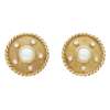 each of circular outline, collet set with a central pearl and five round brilliant-cut diamonds, rope-twist border, to post and clip fittings