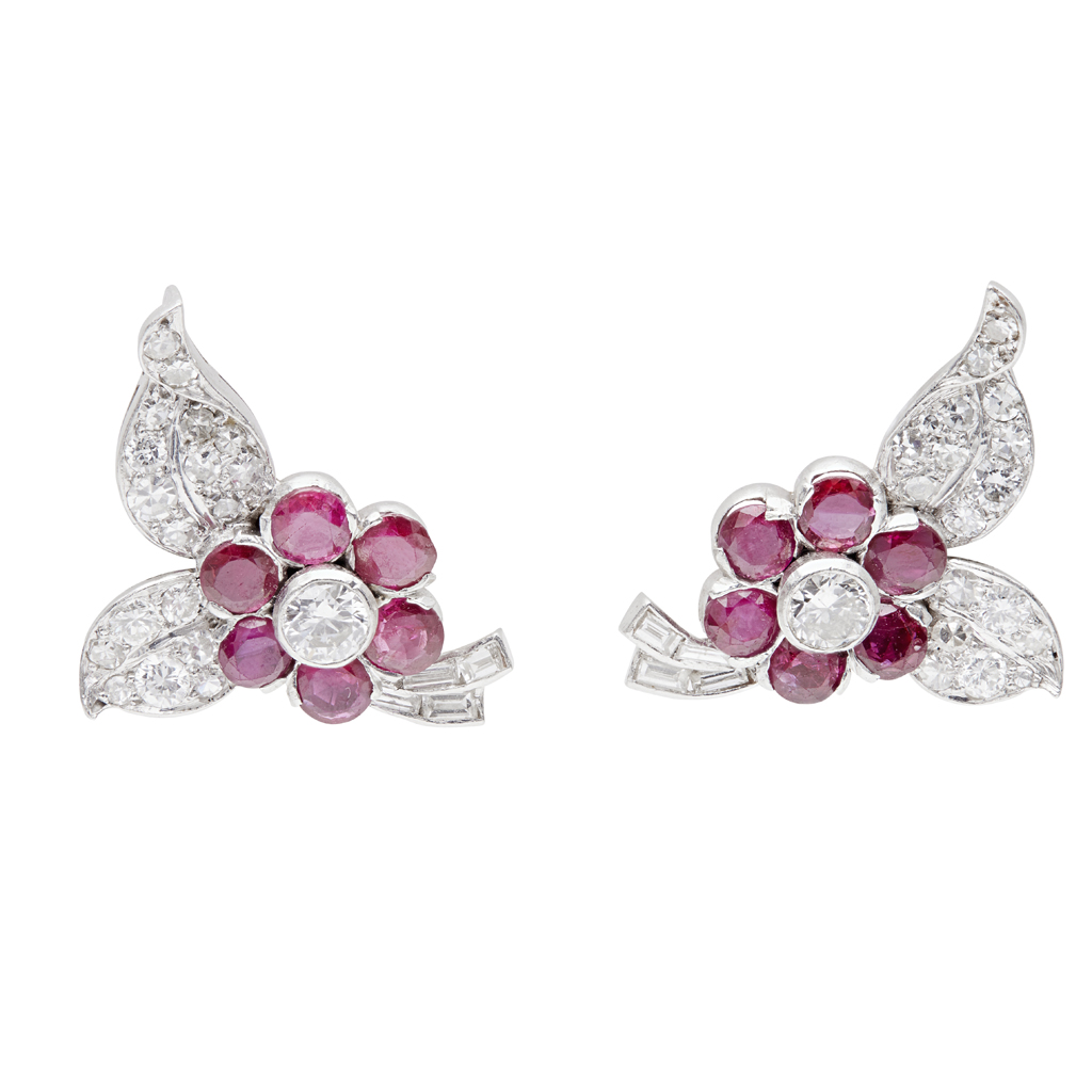 A pair of ruby and diamond set earrings