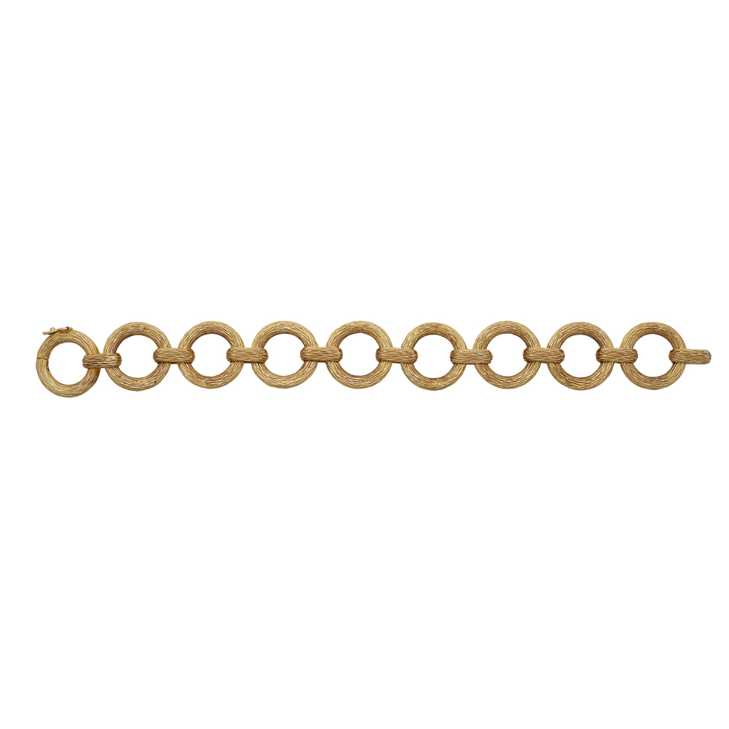 composed of heavy circular 9ct gold textured links, to a concealed clasp