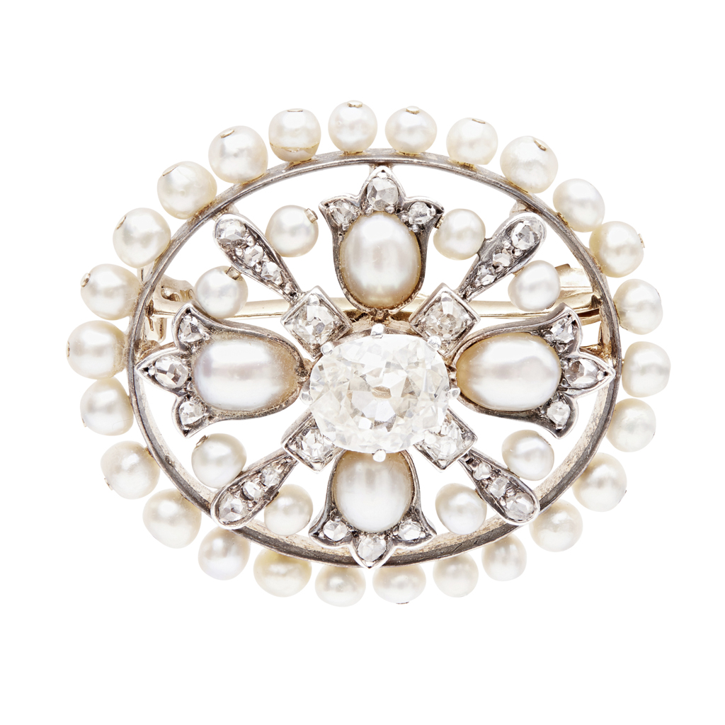 An early-20th century pearl and diamond set brooch