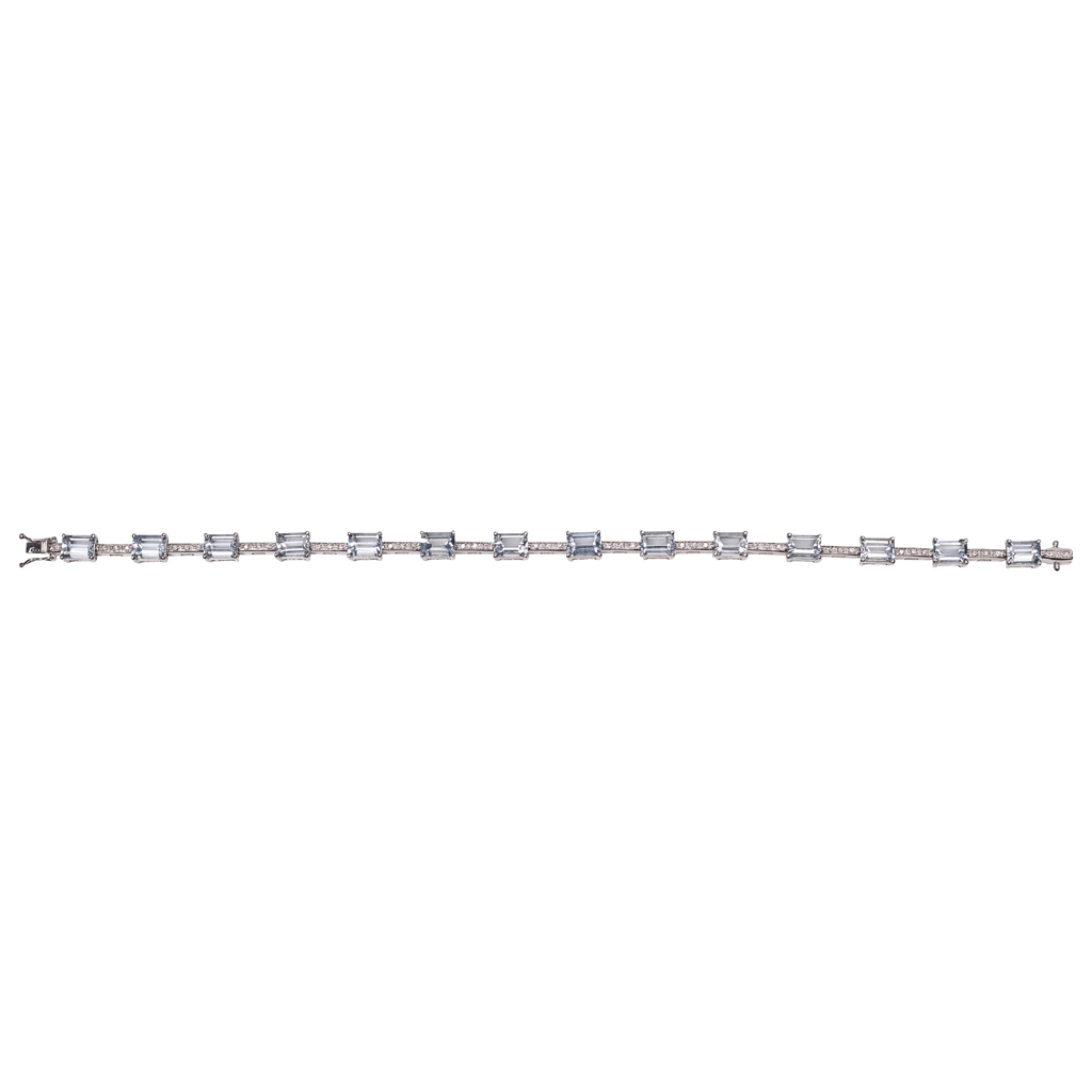 An aquamarine and diamond set bracelet