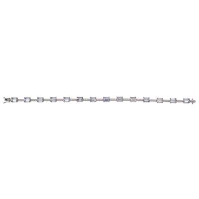 claw set with fourteen baguette cut aquamarines, between rectangular links each set with three small round cut diamonds, to a concealed clasp and safety clips, stamped 750