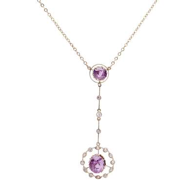 A pink sapphire and diamond set pendant