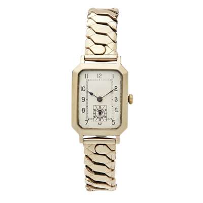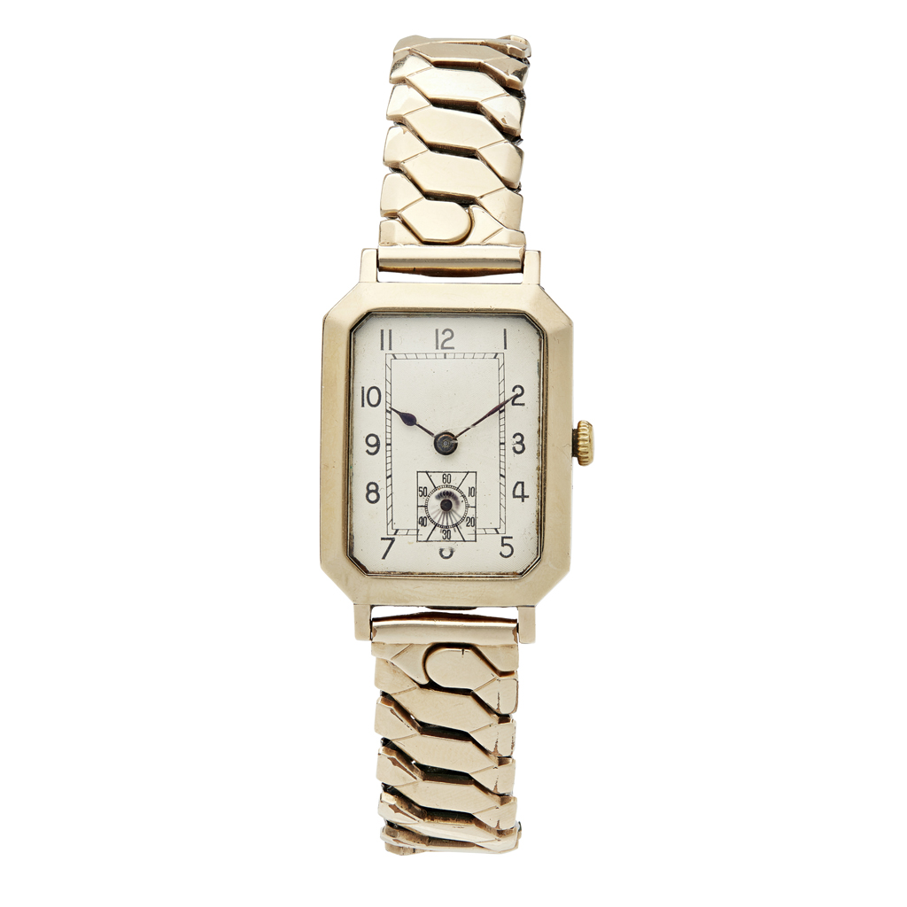 Rolex Prima movement, rectangular case and dial with Arabic numerals, subsidiary seconds dial, later gilt bracelet