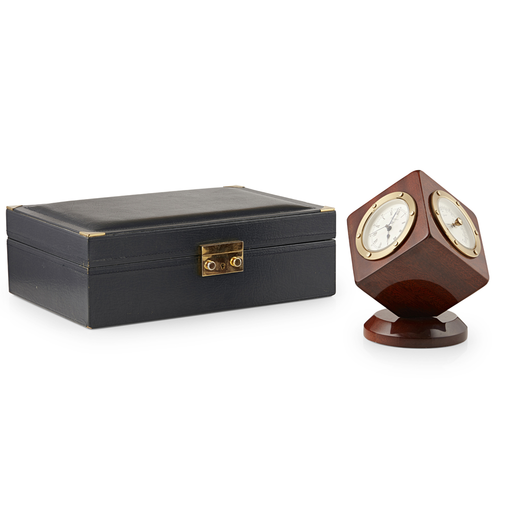 DiaStar, 193.0324.3, all polished black, gilt hands, with multi-function digital display, with box and booklets; together with Rapport, a desk clock, barometer and thermometer of square wood vase, inset gilt cased actions, round base; and a Rolex leather cased jewellery box with removable tray and with a key (3)