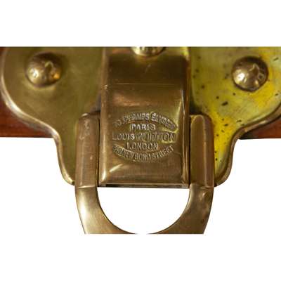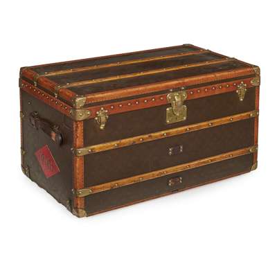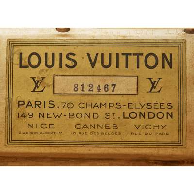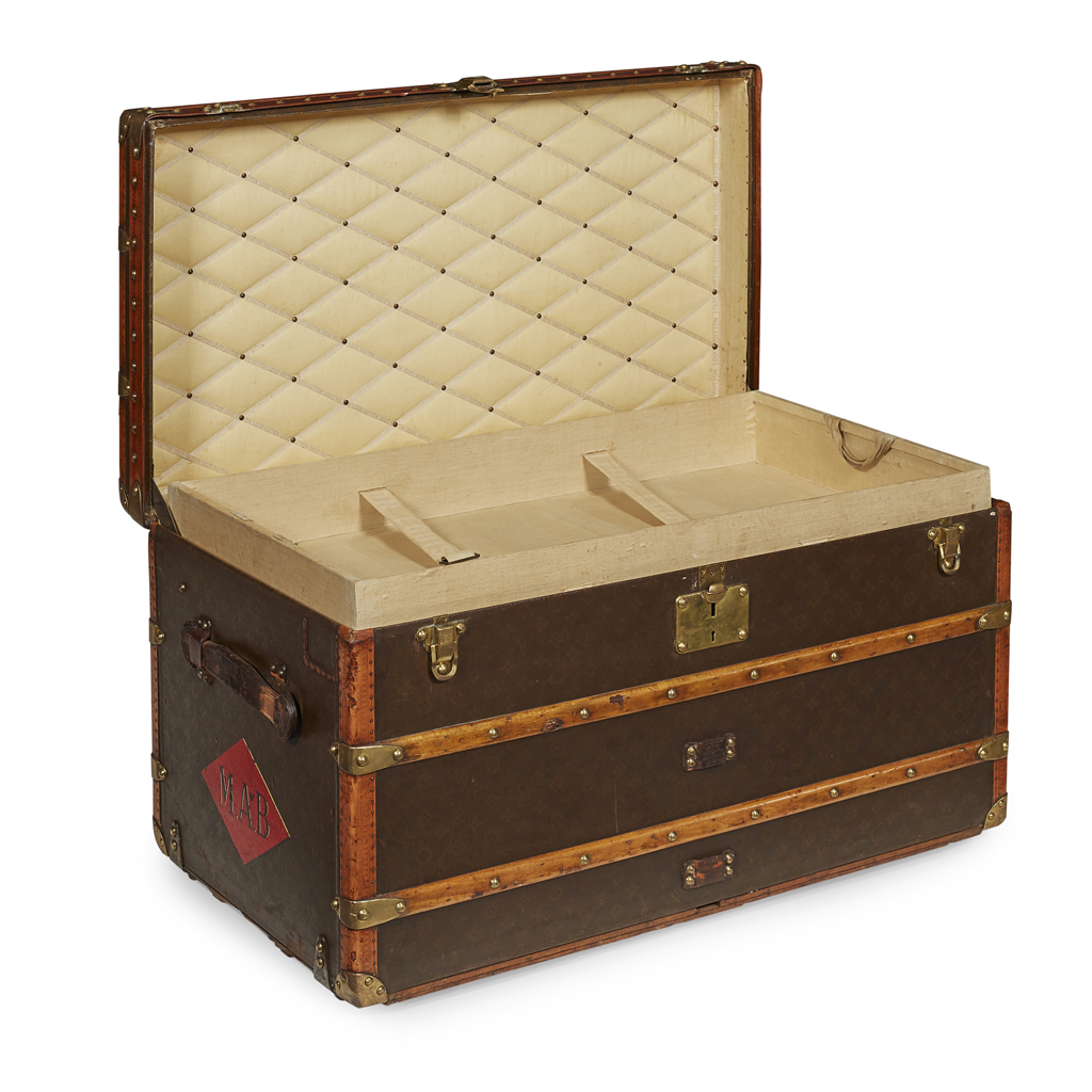 LV monogram canvas with monogram embossed leather trim, ash straps and brass handles with stamped lockplate, painted personalised monogram M.A.B., the interior with a tray and paper label with serial no. 812467