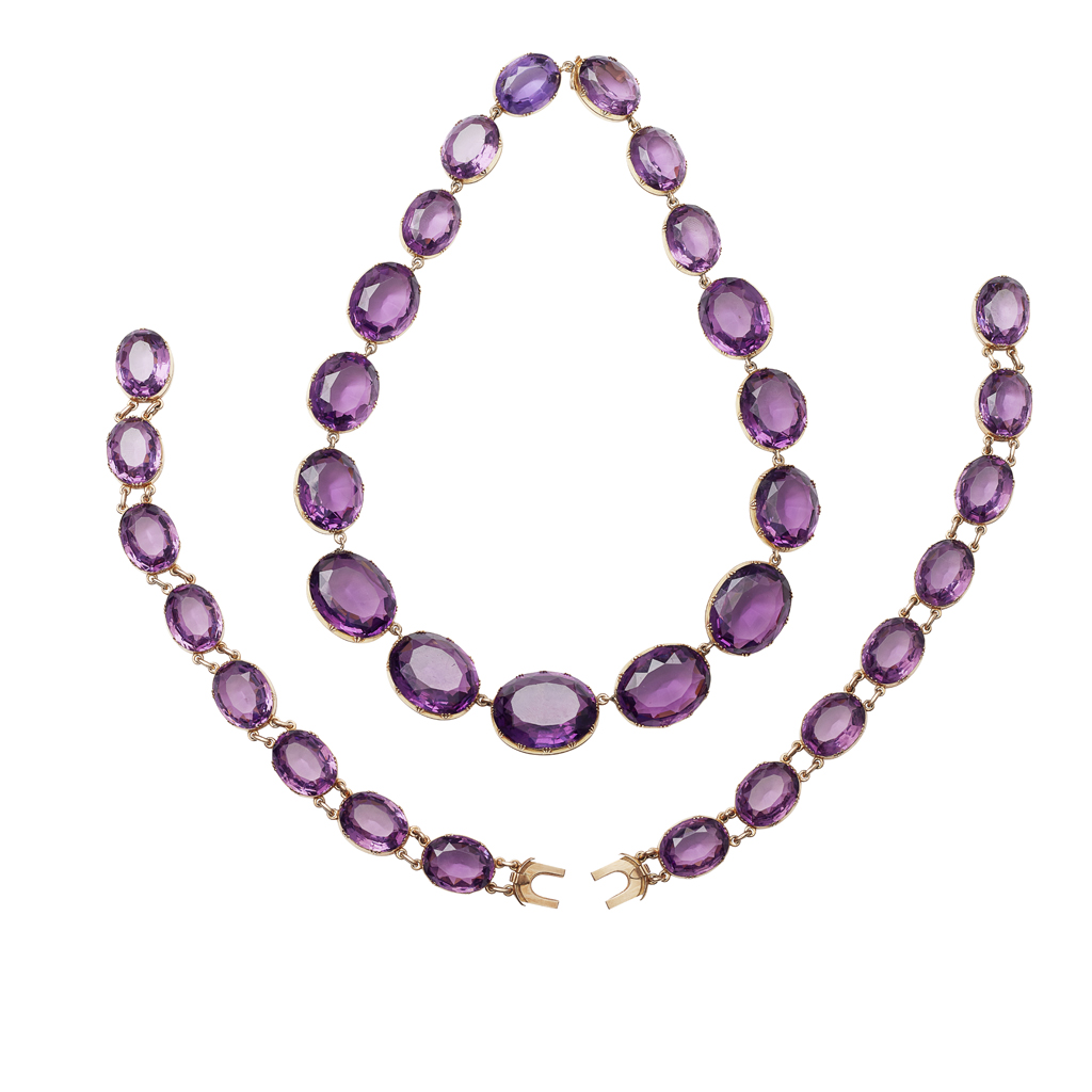 An amethyst set necklace and matching bracelets