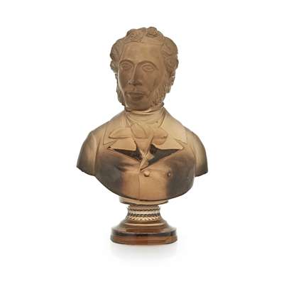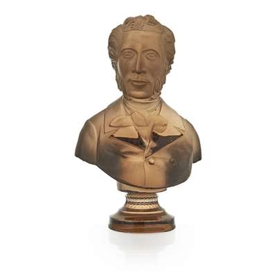 A 19th century carved smoky quartz bust of a gentleman