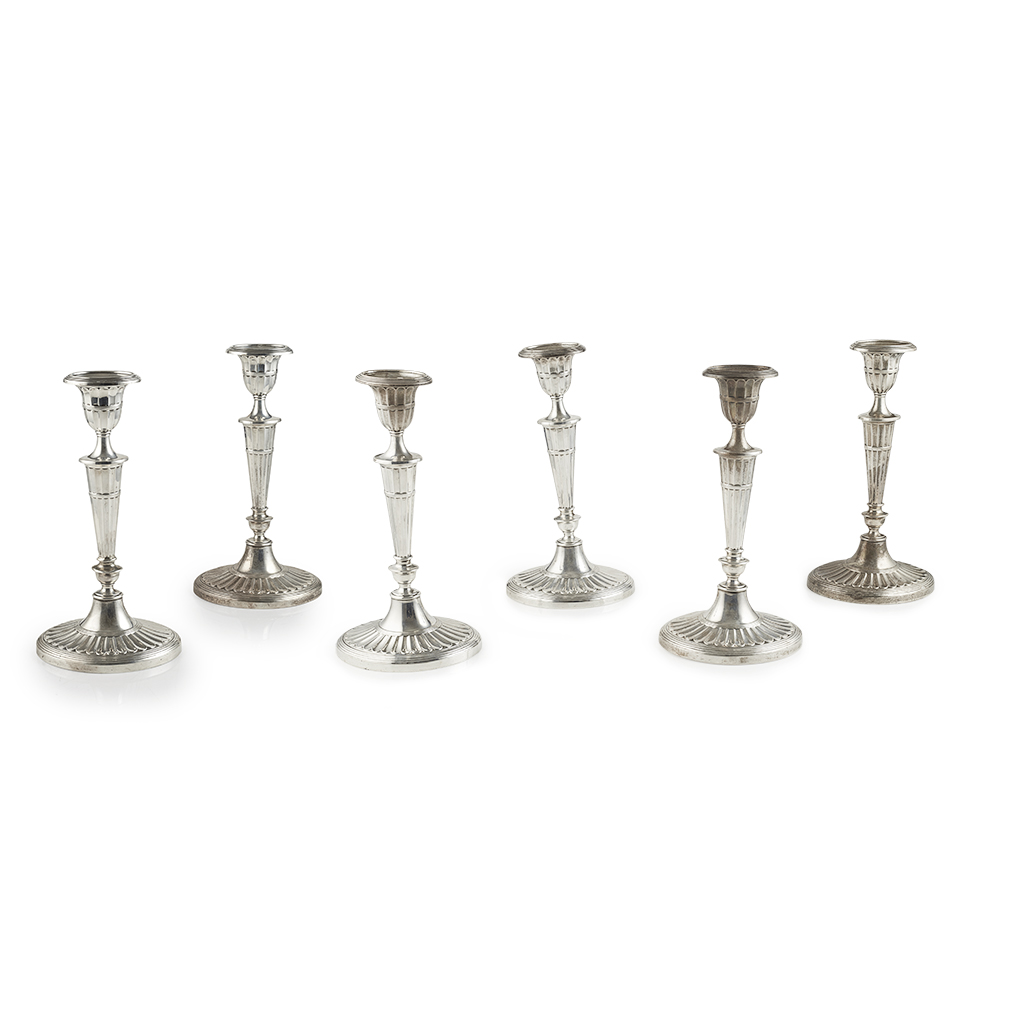 A set of six table candlesticks