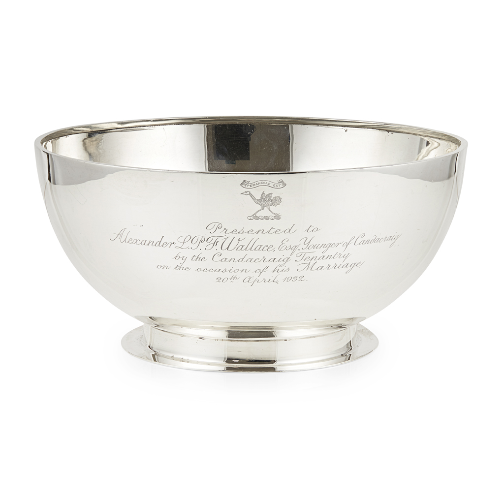 S.B. & S., Chester 1931, of circular form, raised on a short collar with flat rim foot, presentation engraving to front 'presented to Alexander L.P.F. Wallace Esq... on the occasion of his marriage'