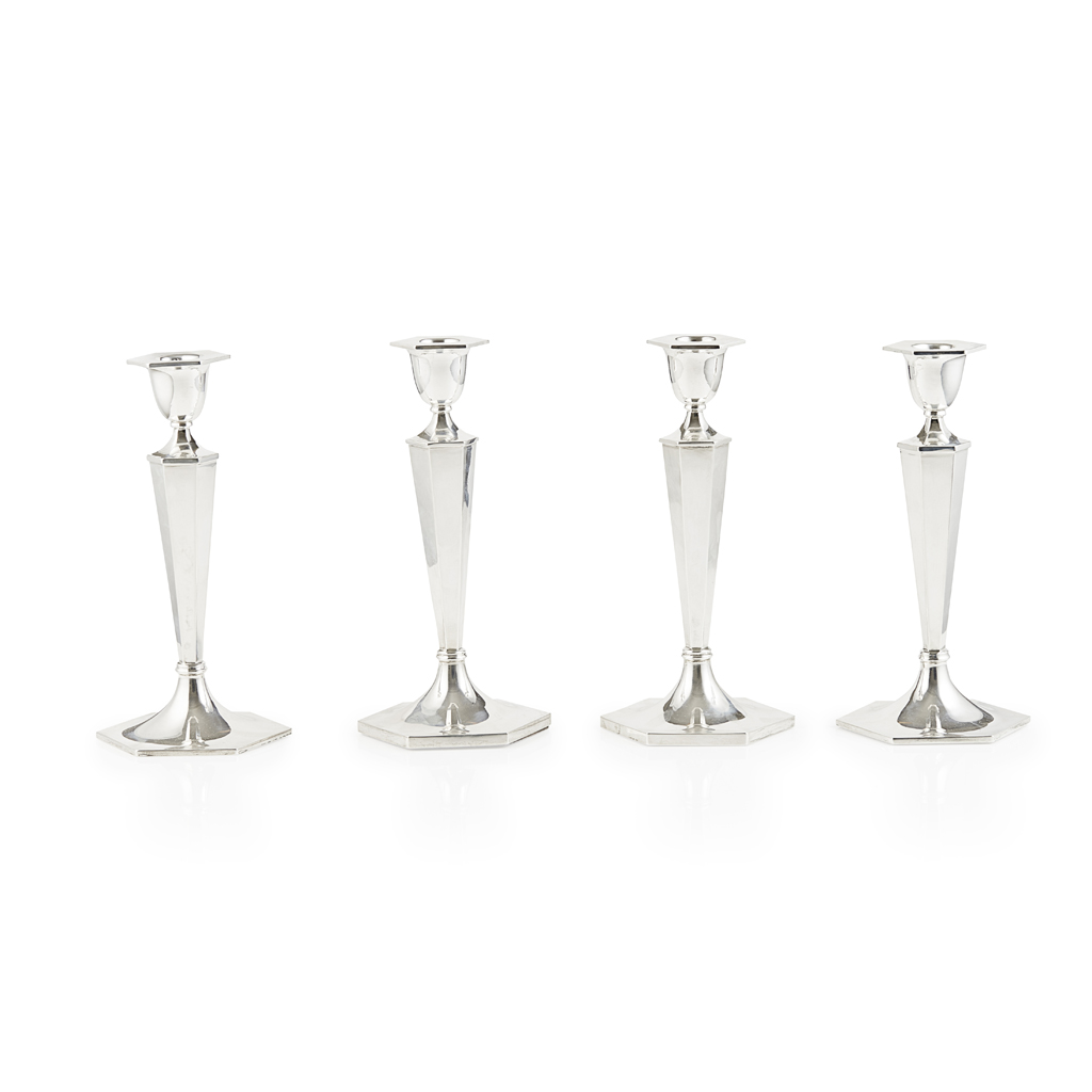 Walker & Hall, Sheffield 1925, of tapering hexagonal form, to a spreading foot loaded (4)