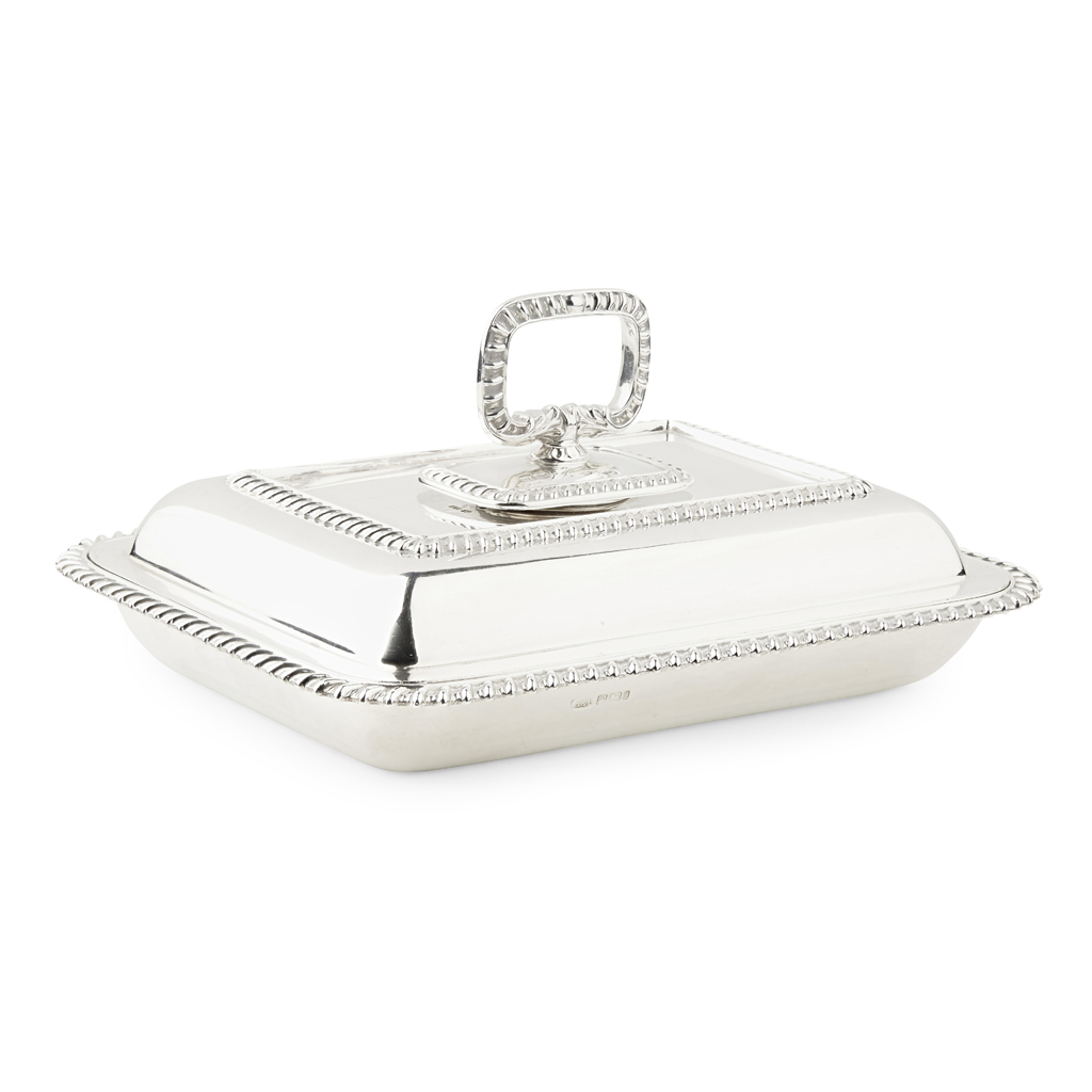 H Aitken, Sheffield 1901, of rectangular form, gadroon border, removable handle