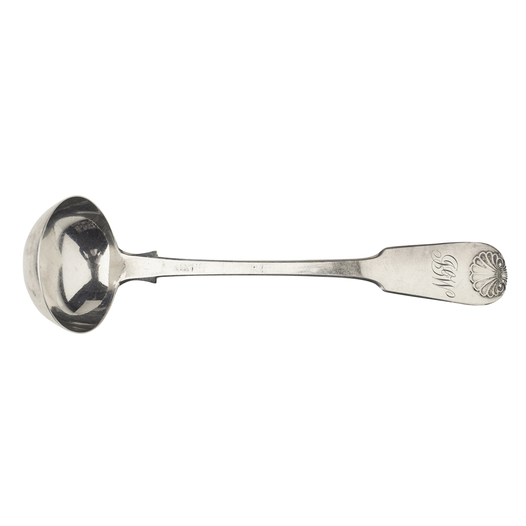 maker unknown, marked &CS, pot of lilies thrice, of Fiddle and Shell pattern with script initials JGW to terminal