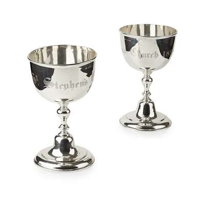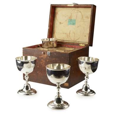 J. McKay, Edinburgh 1828, the deep wide bowls inscribed St. Stephen's Church 1828, above a knopped stem and large domed foot, in original oak case (4)