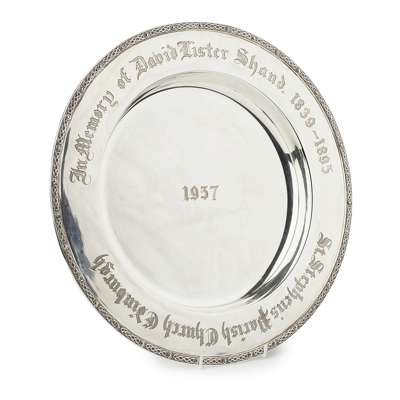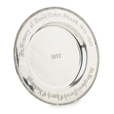 MacKay & Chisholm, Edinburgh 1957, of circular form, with Celtic border and wide flat rim, the centre with dish well, large Gothic presentation inscription to rim and well (2)