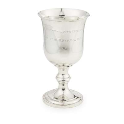 James & William Howden, Edinburgh 1828, with deep bell shaped bowls, presentation inscription above a waisted knopped stem and spreading foot (4)