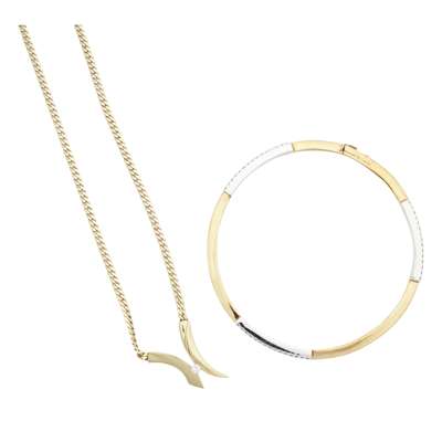 A modern diamond set bangle and pendant necklace