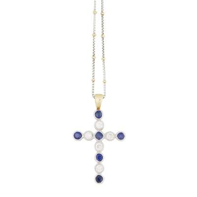 A 18ct gold sapphire and diamond set cross