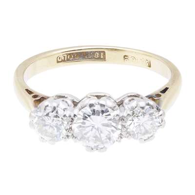 A three stone diamond set ring