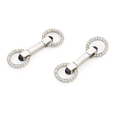 A pair of diamond and onyx set cufflinks