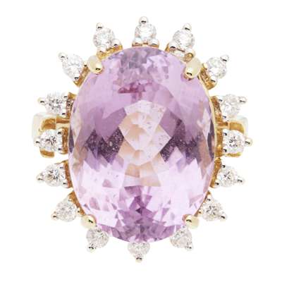 A kunzite and diamond set cocktail ring