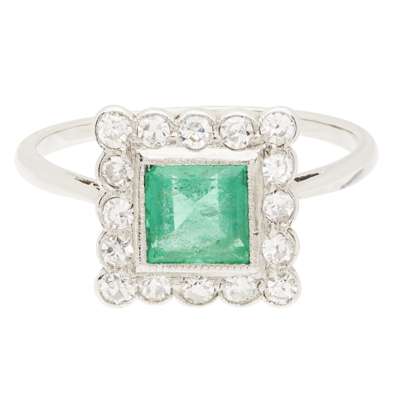 An Art Deco emerald and diamond set ring