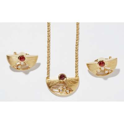 An 18ct gold diamond set necklace and earrings suite