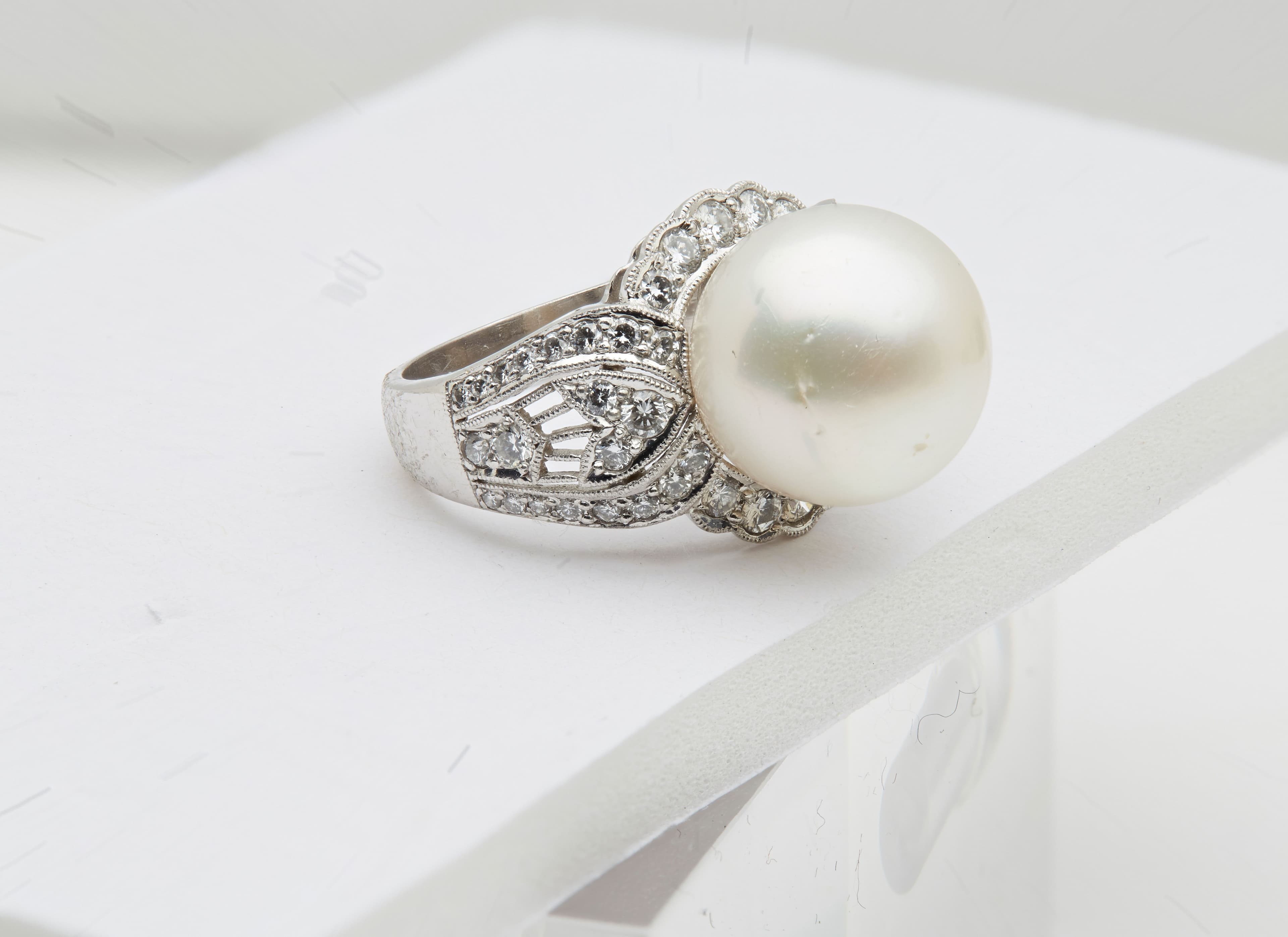A South Sea pearl and diamond cocktail ring