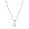 the pendant claw set with three graduated round brilliant cut diamonds, to an 18ct white gold spiga link chain