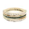 channel set with a row of square cut rubies and sapphires, between two hinged half-crescents, each set with graduated round cut diamonds, modelled in unmarked yellow metal