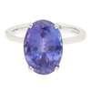 claw set with a single oval cut Tanzanite, to a plain platinum shank