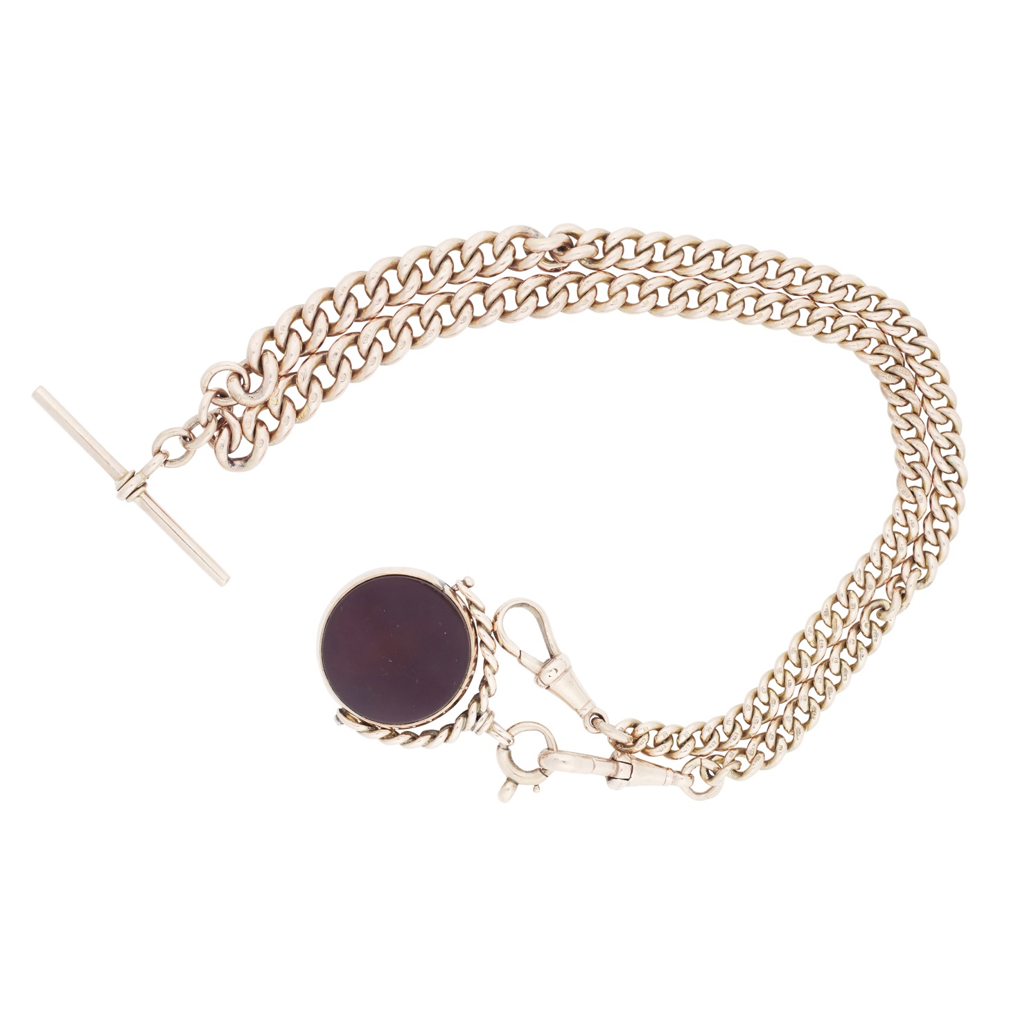 A gentleman's 9ct rose gold double Albert and fob