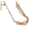 marked 9ct and of multiple chains with sliding hanging form, engraved decoration and with unusual handbag shaped fob