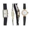 an 18ct two colour gold cased Art Deco cocktail watch, of slim rectangular form, stepped case with white metal mesh link strap and clasp; a 1920s 9ct gold cased wrist watch, white dial with Arabic numerals, plain case, leather strap; Roy King, a 1974 rectangular silver cased wrist watch, mirror dial, signed, feature hallmarks to rear of case, manual movement, leather strap; a small silver and marcasite set cocktail watch, silk strap (4)