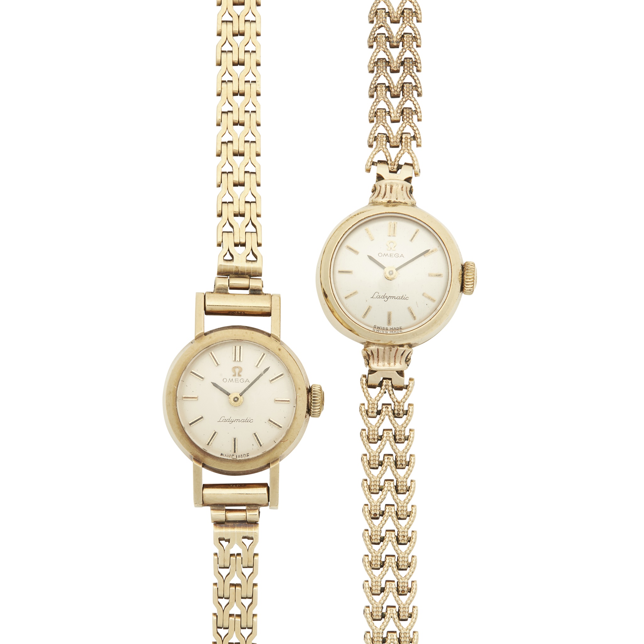 Ladymatic, both dials inscribed and with baton indicators, both with flexible 9ct gold bracelets, fold over clasps (2)