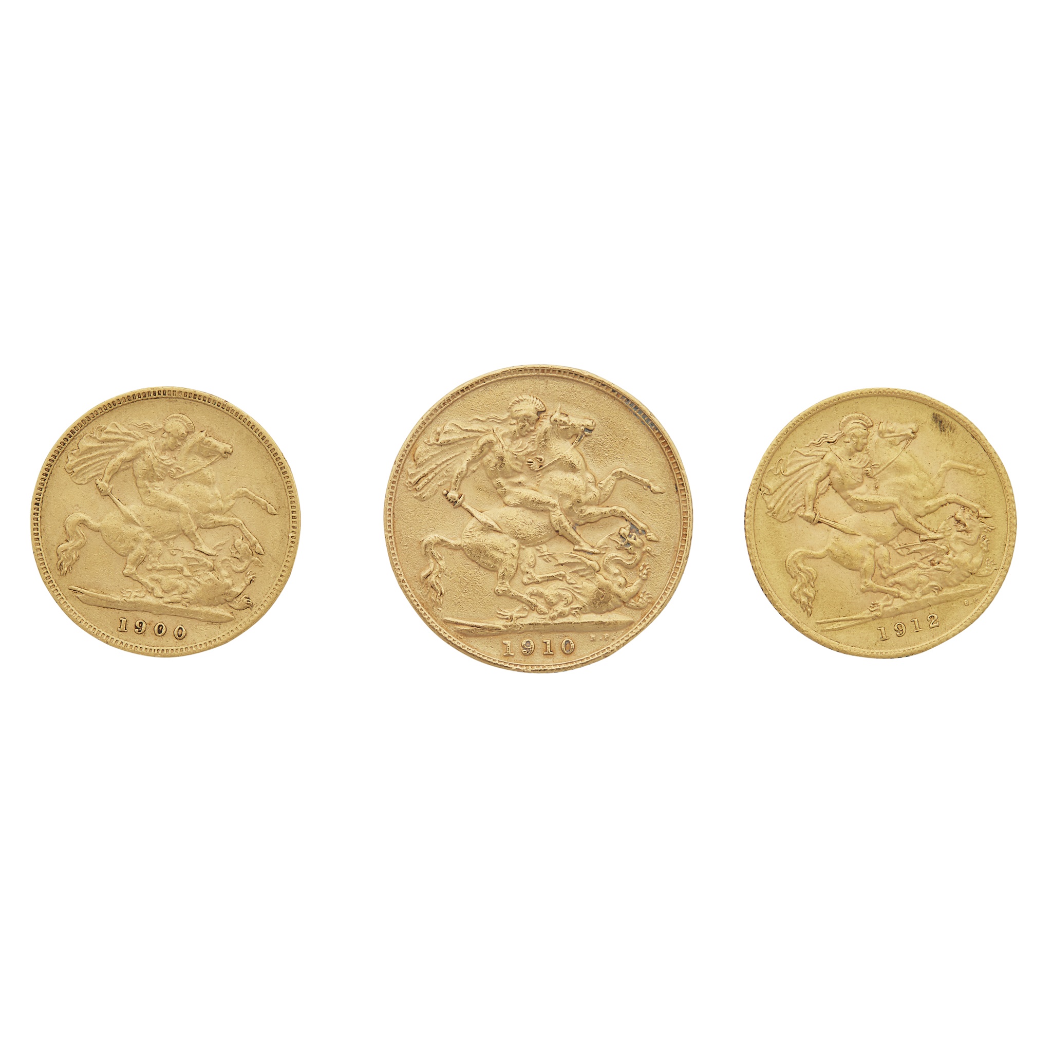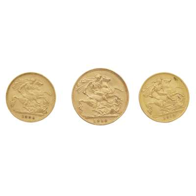 1910; together with two half-sovereigns, 1900 and 1912 (3)