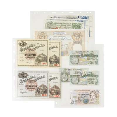 from Canada; Guernsey; German inflationary money, Eire and Funf Millarde notes, others; Turkey; Norway; Sweden including 1950s notes 50Kr and 100Kr; Italy; Switzerland; France 1940s, 60s, 100 and 200Fr, 1937 1000Fr; Isle of Man; Jersey: Gibraltar; Eire (qty)