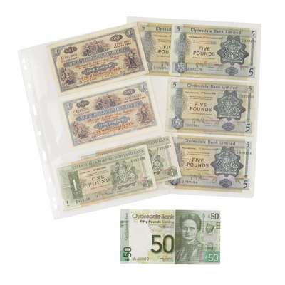 to include £50 Elsie Inglis 2009 with serial no. W/HS 000000, mint P233ar; £20 2006, Thorburn P228g and another 2005; £20 1999, Wright, P228b; £20 1997 Goodwin P228a; £20 1993 ??; £10 2007 Thorburn P226f; £10 Thorburn, Commonwealth Games issue; £10 2006 Thorburn P226f; £10 2003 Targett, P226c; £10 January 2000 with Millennium overprint and MM serial no. P229a; £10 4 others; £10 1988 and 1983 Hamilton P214; £ 20, £10, £5, Thorburn mint, P232a etc; £10 Thorburn 2009, Robert Burns; £5 Goodwin with Burns and poem 1996 P224d; another without poem; £5 another four Goodwin P224 a, a, b. c: another five similar (used); £5 Goodwin P218c; £5 Thorburn 2015; £5 Savage 2002 P218d; another 4 £5 1990, Hamilton and 1994 Cicutto P218a, a, a, b, a: another 5 £5 Hanilton 1983 to 1989 P212; £5 1963 Fairbairn; £5 x 3 Fairbairn, 1963, 1965, 1968 P198a: £5 Clydesdale and North of Scotland Bank Fairbairn 1963 P196a; £1 x 10 1971 to 1988 Fairbairn, McMillan Hamilton, p204; £1 Clydesdale and North of Scotland Bank Fairbairn 1969 P202; £1 Fairbairn group of 6, 1962, 1966, 1977, P197, P195: £1 Clydesdale Bank, Mitchell, Young 1945 P189; £1 Clydesdale Bank, Campbell, Houston, 1949 P189 (qty)