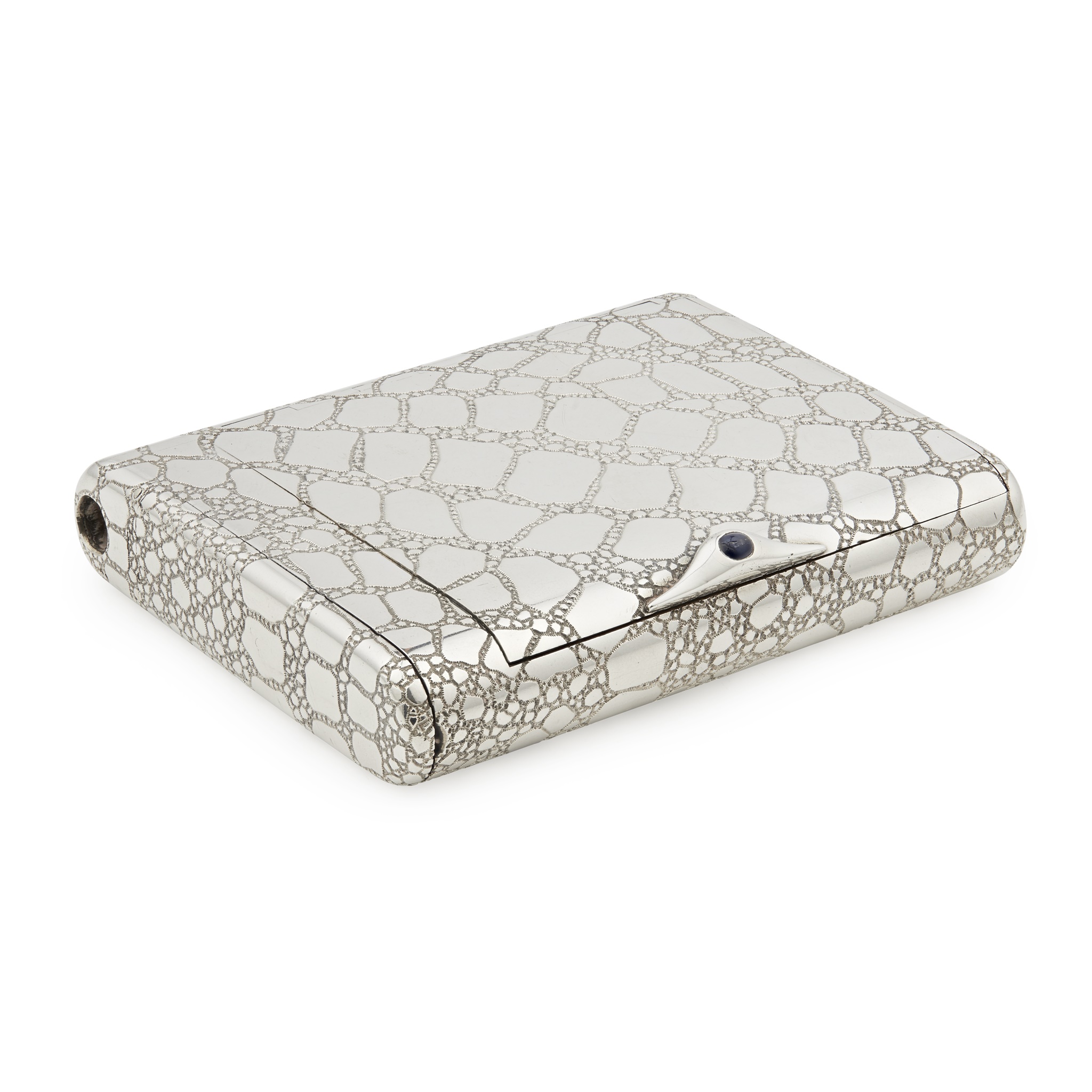 makers marks HA, of rectangle form with crocodile skin effect decoration and a sapphire cabochon thumbpiece