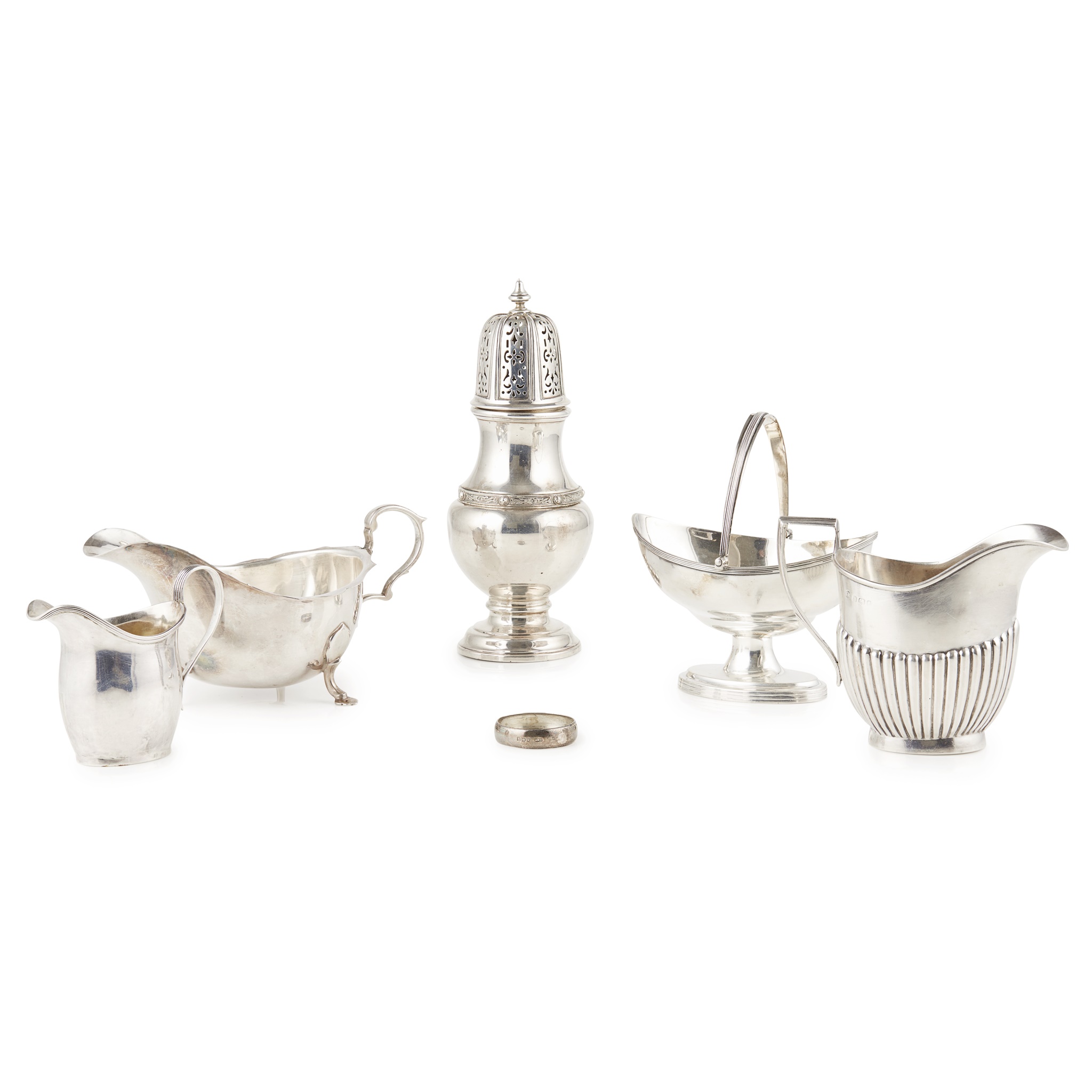 Adie Brothers Ltd, Birmingham 1932, of traditional baluster form, embossed Celtic border to body, the pull off pierced lid with knopped finial; together with a matched swing handled sugar basin and milk jug, a cream jug and a sauce boat (5)