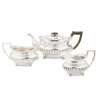 John Round & Son Ltd., London, 1899, comprising; a tea pot, milk jug, sugar bowl, all of oval demi fluted form, cast gadrooned and shell border, heavily embossed floral decoration to body, vacant cartouche to either side of body, angular handles, raised on four ball feet, domed hinged lid (3)