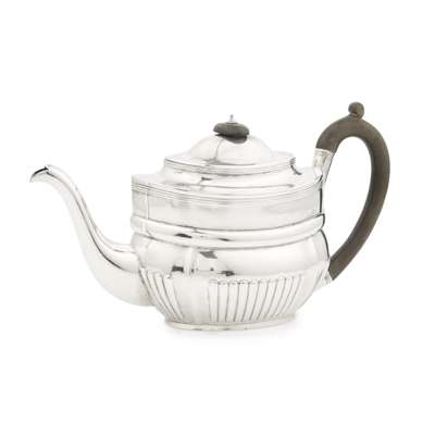 WH, London 1804, of oval form, border to girdle and fluting to lower body, C scroll handle, domed hinged lid