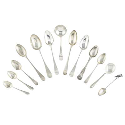A matched set of dessert spoons