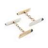 each baton of cylindrical form, reeded detail, polished angled terminals set with one cabochon sapphire, chain links, indistinctly marked, possibly Russian