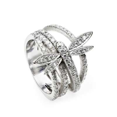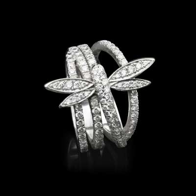 modelled as a dragon fly in four intertwined bands, pavé set throughout with round brilliant cut diamonds in 18ct white gold