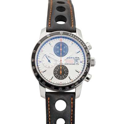 Grand Prix de Monaco Historique Ref 8992, serial no. 1593590, polished case, black fixed tachymeter, silvered dial with black register and silvered seconds dial, with date aperture, orange hand, visible movement to rear, original leather strap and Chopard buckle, circa 1910